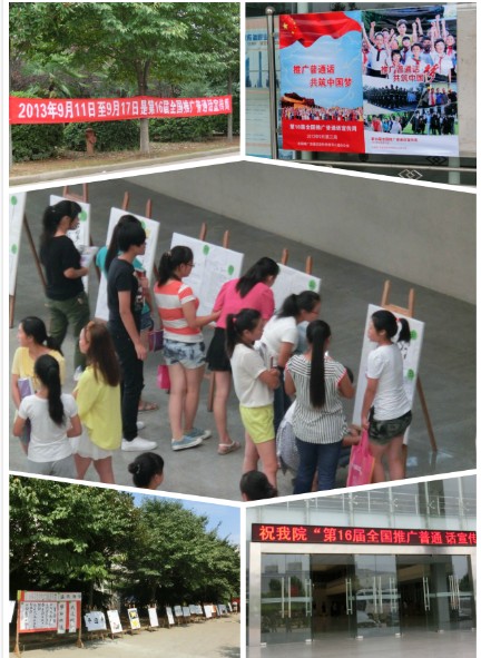 今年9月11日—17日是全国第16届推广普通话宣传周,根据《省语委等九部门转发教育部等九部门关于开展第16届全国推广普通话宣传周活动的通知》(鄂语字【2013】13号)文件精神,围绕本次推普周主题——“推广普通话,共筑中国梦”,我院在推普周期间,按照制定的活动方案,结合自身实际情况,大力宣传,多方动员,开展了一系列推普活动,现对推普活动情况总结如下:
