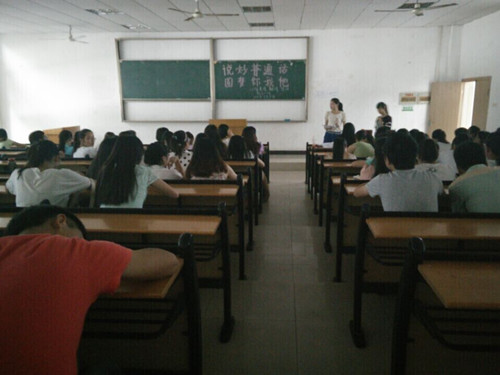 四.组织2014级新生开展了“说好普通话,圆梦你我他”演讲比赛活动。比赛中同学们用激情的语言,向大家推广普通话,阐述说好普通话与自身发展的联系,憧憬理想未来。学生们来自全国各地,方言也各不相同,尽管都中学都接受了普通话教育,但是能够做到演讲字正腔圆、语言流利的并不是很多。在准备比赛的练习过程中学生们互相纠正普通话发音,是彼此交流用语同化的过程,是日后大家作为一个集体交流想法联络情感的基础,也是推普工作周的重要工作目的。