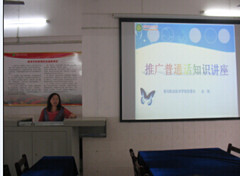 我校在“推普周”活动的开展过程中,紧紧围绕“说好普通话,圆梦你我他”这一主题,富有特色的校园文化已日渐浓厚,校园内外,人人讲普通话,处处讲文明礼貌,讲粗话脏话的人少了,注重文明礼义的人多了,文明向上的校园文化到处呈现。我院还特别注重以寝室、班级、院系、学校活动为契机,以点带面,以学生带动家庭、以学校带动周边环境,组织学生参加推普社会宣传活动,发放宣传材料,讲解推普知识,辐射周围社区,圆梦你我他。