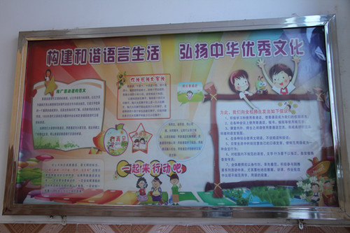 设立一处永久性推普宣传标志。各校在醒目位置设立了推普宣传标志,张贴了多幅推普标语和宣传图片。