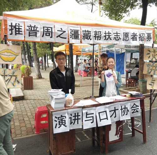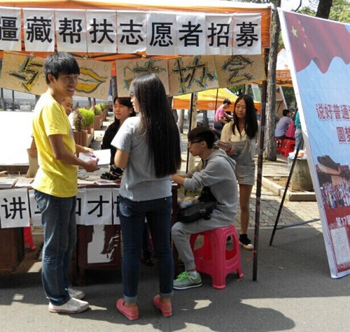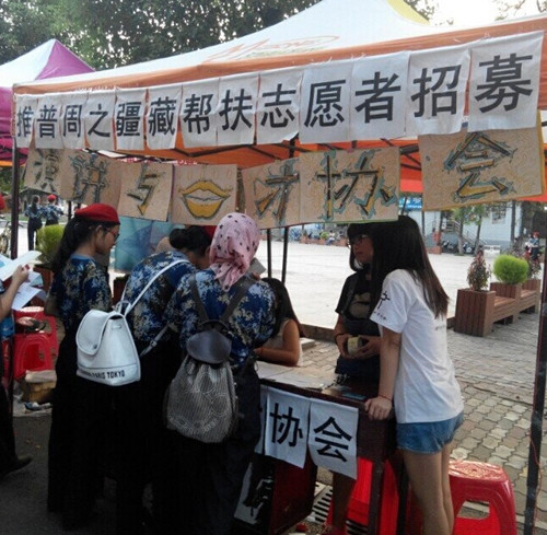 我校将推普周的工作纳入全年的语言文字工作之中。除了在推普周期间举办的活动,如座谈会、海报、街头宣讲等传统活动外,我校还推陈出新,开展形式多样的校园文化活动,不断丰富推普周的内容。我校学生社团演讲与口才协会制作了《全国推广普通话活动周宣传手册》,在学生宿舍区设置展台宣传并免费发放手册,同时社团宣传人员还深入军训场地和课堂将手册送到新生和教师手中。我校团委开展了我省第八届校园金话筒主持人大赛的校内海选活动,报名现场火爆。我校学生工作部(处)和校团委一起发起了“疆藏学生一对一帮扶”活动,遴选普通话较好学生与来自于新疆和西藏的学生结成对子,帮助他们提高普通话水平,更快更好地适应校园生活。