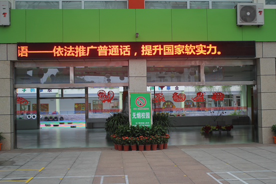 2、在学校门口悬挂了一条推普宣传标语,“推普周”期间,有电子显示屏的学校在一周内显示推普宣传口号。