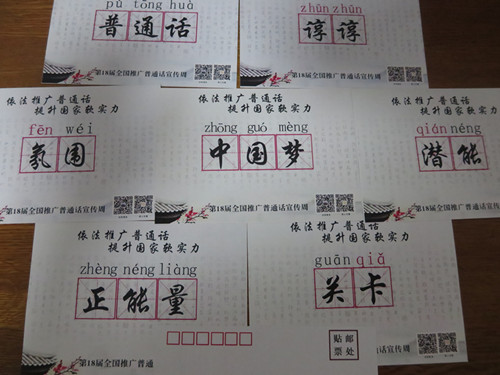 印制推普周宣传画张贴在食堂、教学楼等地方。