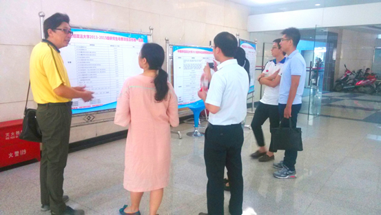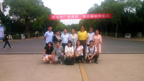 1.在校园内开展“啄木鸟在行动”活动。9月17日,我校语委办组织学校语言文字委员会成员、国家级普通话测试员、省级普通话测试员,以及多名学生共同开展“啄木鸟在行动”校园检查活动。老师、同学们仔细观察校园道路两侧的广告牌、宣传栏、墙壁上的公告以及校园内的题字,在遇到疑惑时,老师们展开激烈讨论,各抒己见,并提出具体的整改措施,留下了深刻而宝贵的意见。在检查期间,学校语言文字工作委员会主任刘茂林副校长从研究生教育工作会议现场来到推普周检查现场,向老师们了解推普周的相关情况,鼓励老师们继续做好推普周的各项工作,不断提高我校师生的汉语涵养和普通话水平,并在文泰楼前和老师们一起合影留念。