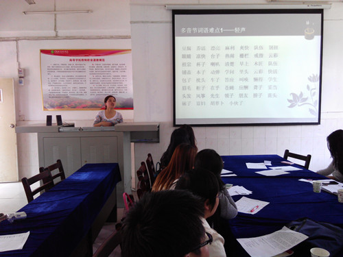 4、9月底,开展今年新进教师及准备参加普通话水平测试的老师培训普通话,培训由省级测试员安琳主讲,效果良好。