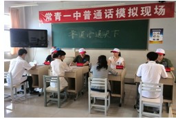 ●汉南区汉南一中推出了“推普进课堂”和“推普出学校”组合拳,扎实推广普通话。校内的推普活动丰富多彩:推普周升旗仪式上进行“推广普通话,共筑中国梦”的主题演讲活动;各班开展“同音话,人同心”为主题班会,办一期推普主题黑板报;举行“经典诵读”展示和普通话问卷及测试等等。